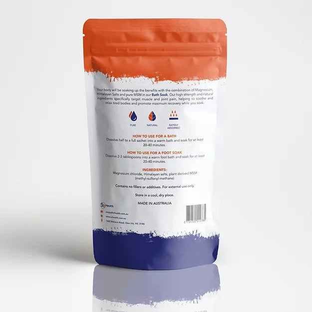 Your body will be soaking up the benefits with the combination of Magnesium, Himalayan Salts and pure MSM in the SR Health Bath Soak.